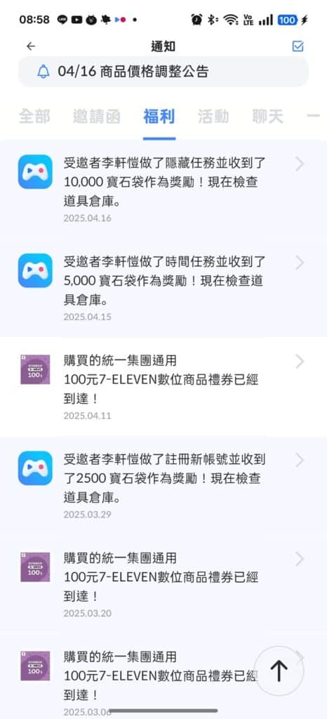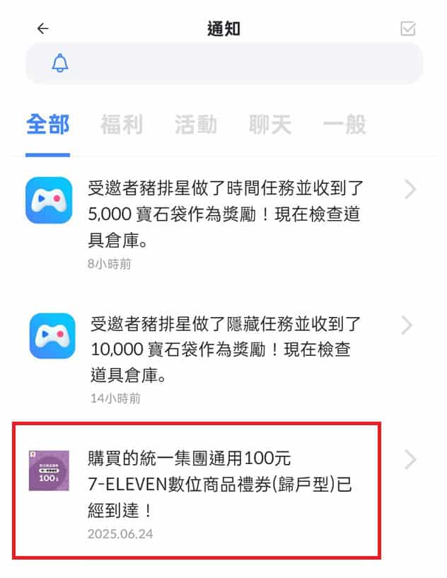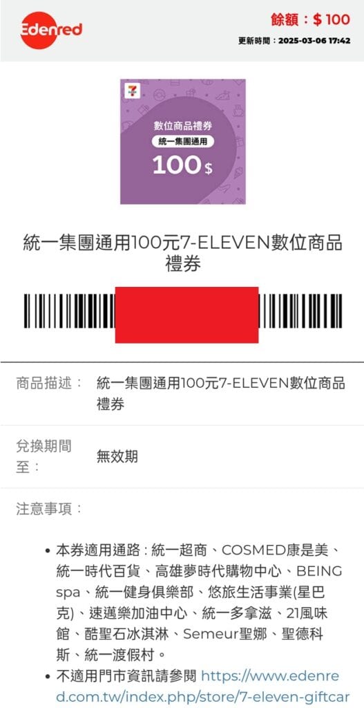 | 2025/6/16 | 7-11 禮券 NT$100 (歸戶型 ) | 2,500 金幣 | 文章分享 兌換紀錄 |