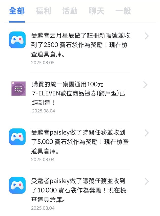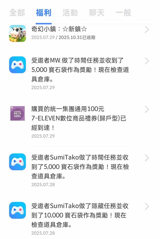 | 2025/07/01、07/08 | 7-11 禮券 NT$200 (歸戶型 ) | 5,000 金幣 | 兌換紀錄 兌換紀錄 |